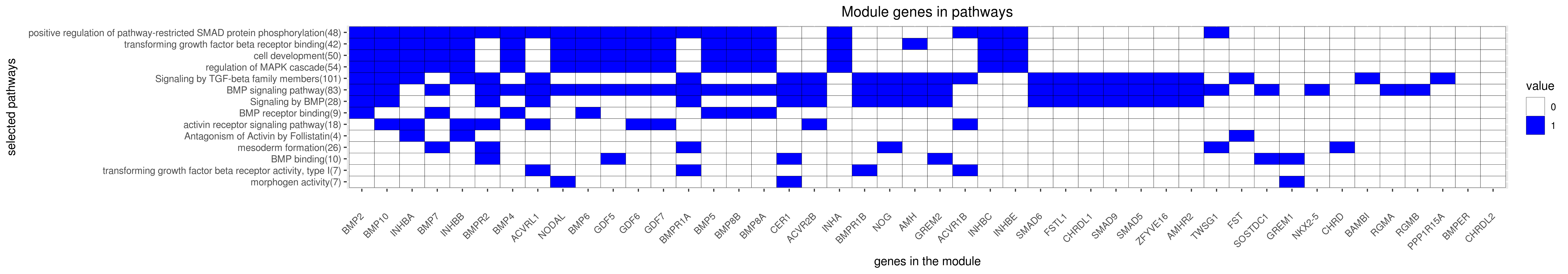 1. To select a small number of specific / non-redundant annotations for each module, a regression-based approach was used;