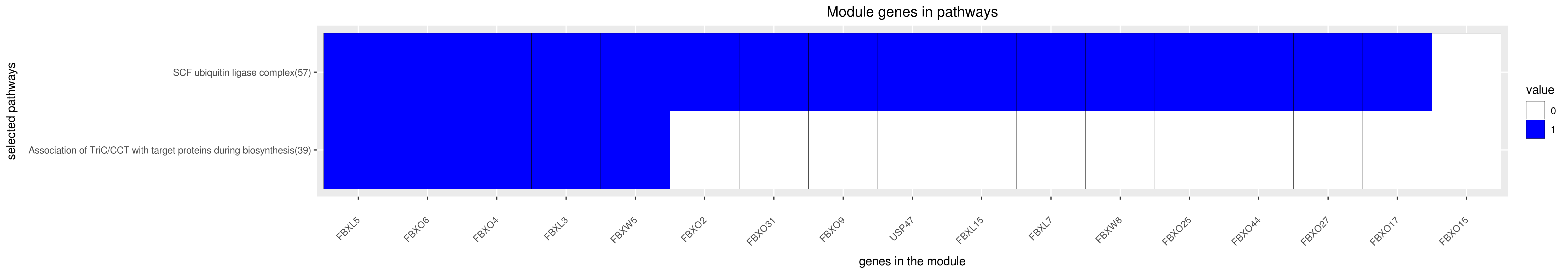 1. To select a small number of specific / non-redundant annotations for each module, a regression-based approach was used;