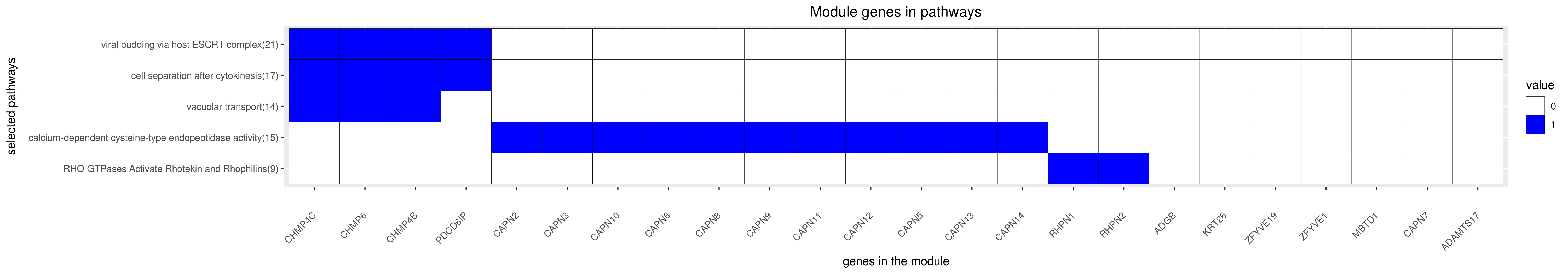 1. To select a small number of specific / non-redundant annotations for each module, a regression-based approach was used;