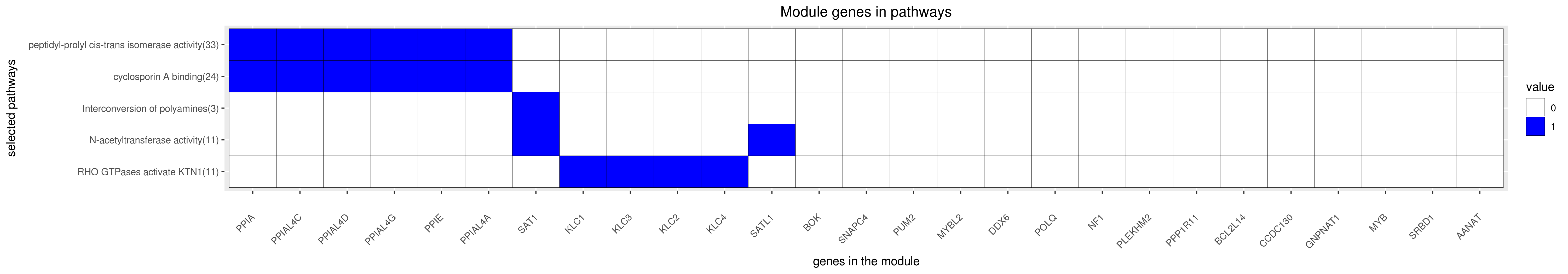 1. To select a small number of specific / non-redundant annotations for each module, a regression-based approach was used;