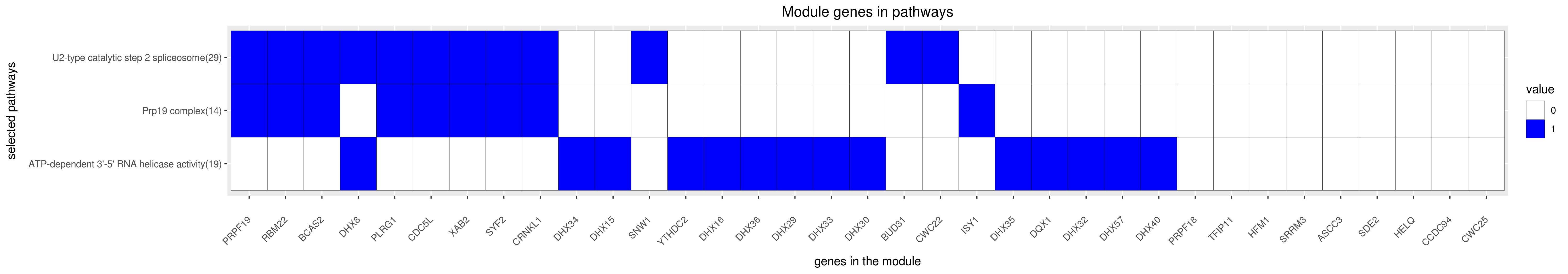 Modules were tested for enrichment in functional and pathway annotations using two complementary approaches: