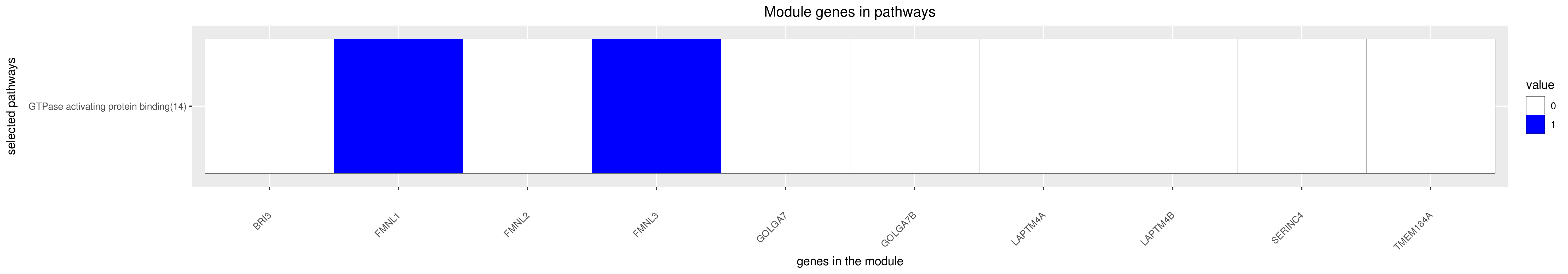 Modules were tested for enrichment in functional and pathway annotations using two complementary approaches:
