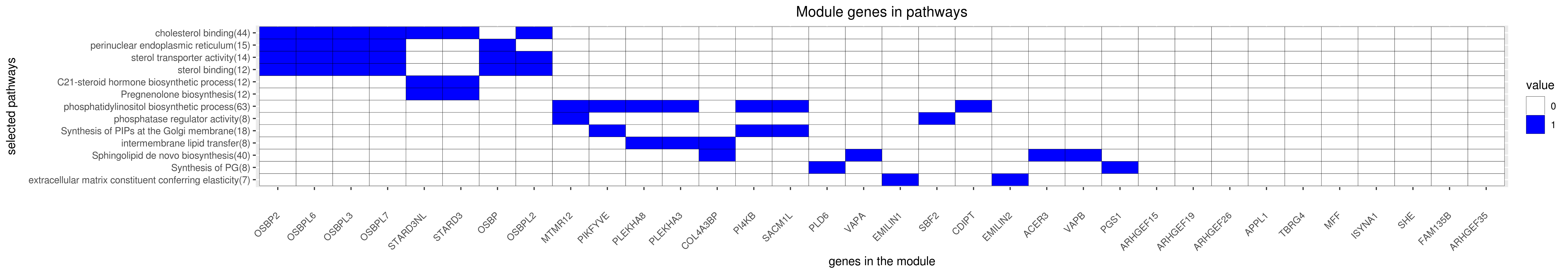 1. To select a small number of specific / non-redundant annotations for each module, a regression-based approach was used;