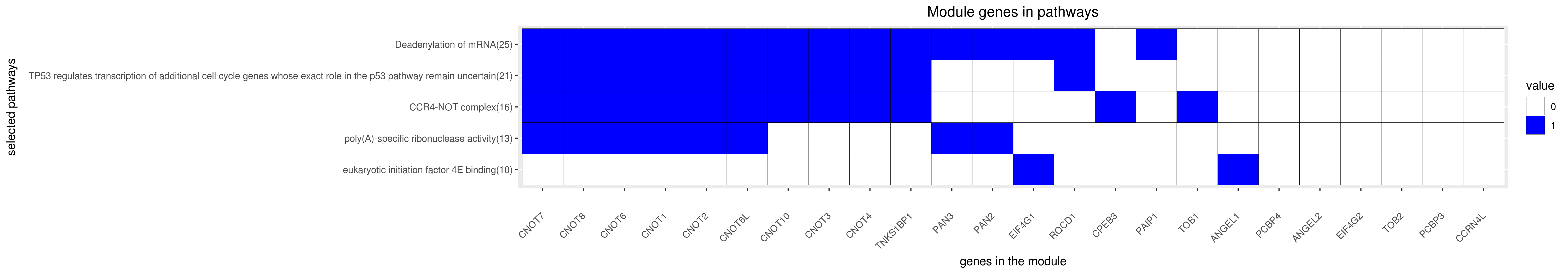 1. To select a small number of specific / non-redundant annotations for each module, a regression-based approach was used;