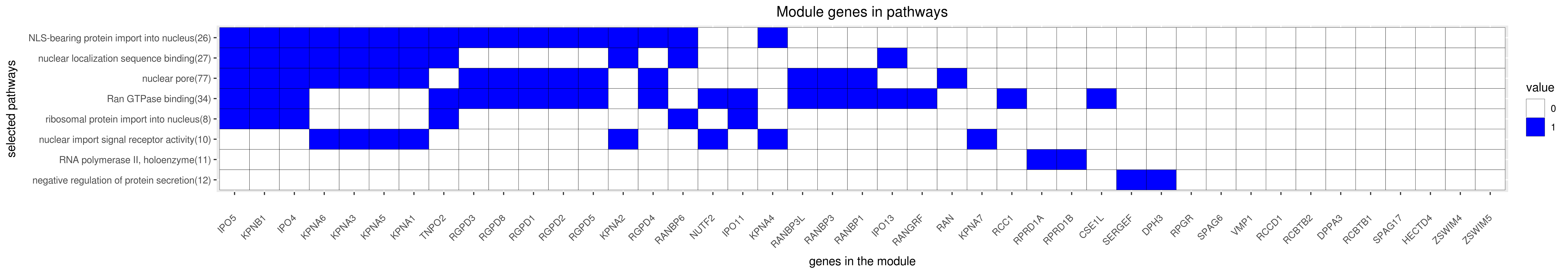 1. To select a small number of specific / non-redundant annotations for each module, a regression-based approach was used;
